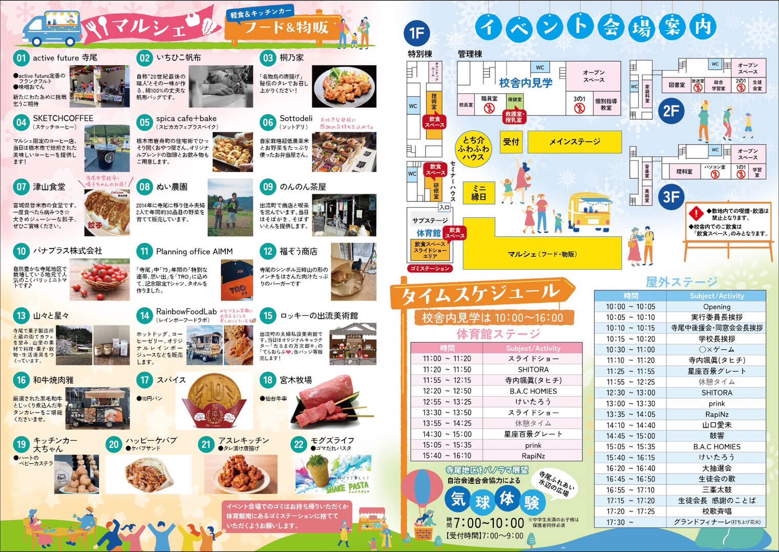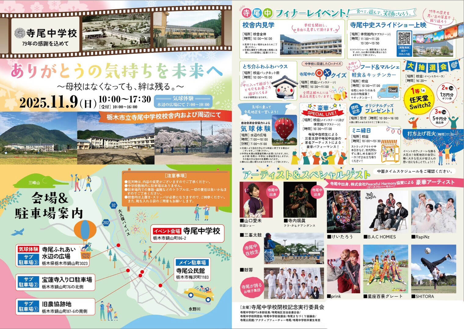 イベントは盛りだくさんの内容で、普段は見られない校舎内見学や寺尾中学校の歩みのスライドショー、寺尾出身のアーティストやスペシャルゲストによるパフォーマンスもあるんですよ!もちろんキッチンカーも出ますので、観て食べて楽しめるイベントです!