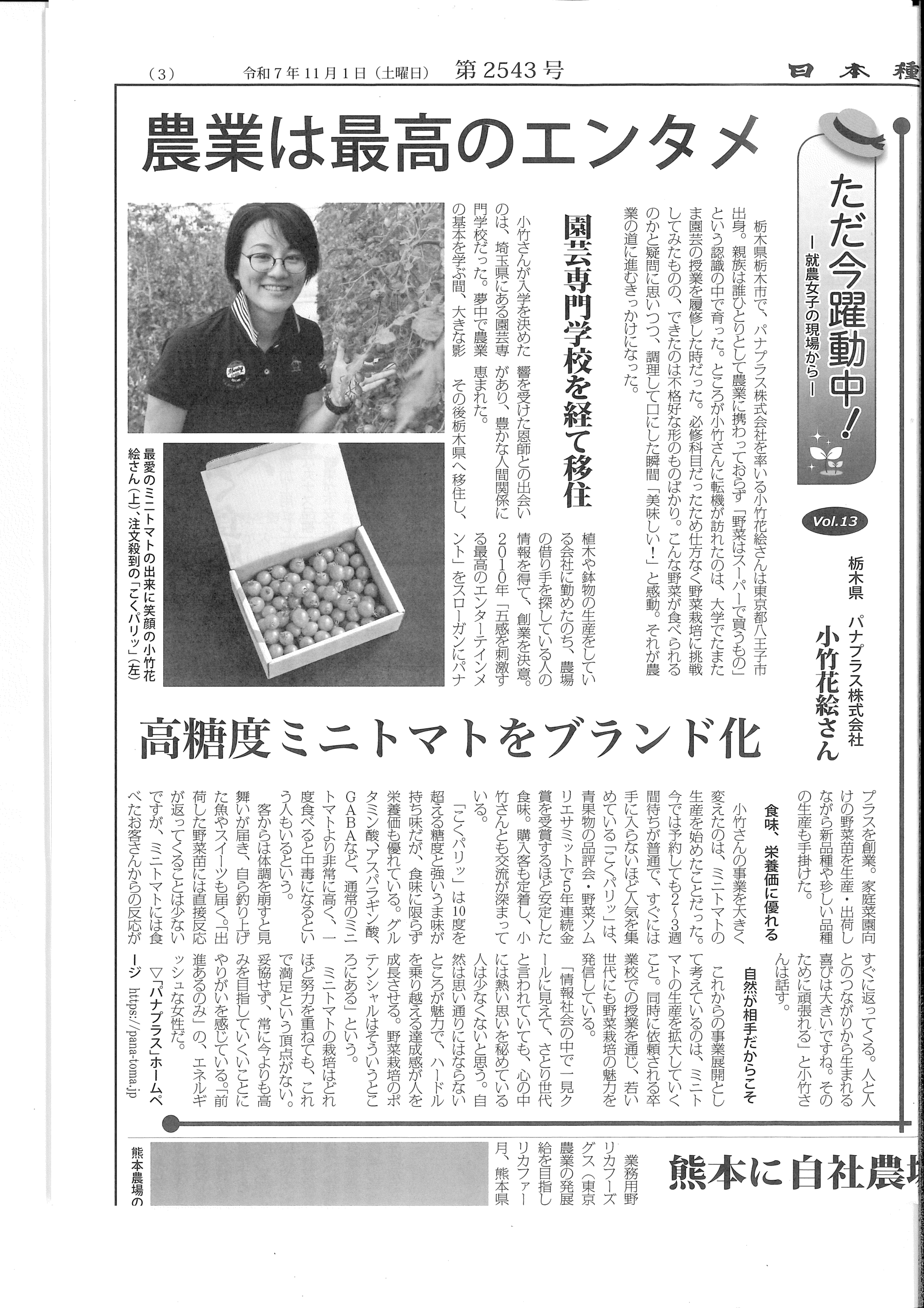 お子様からお年寄りの方に人気の甘くておいしいミニトマト(『こくパリッ®』)
